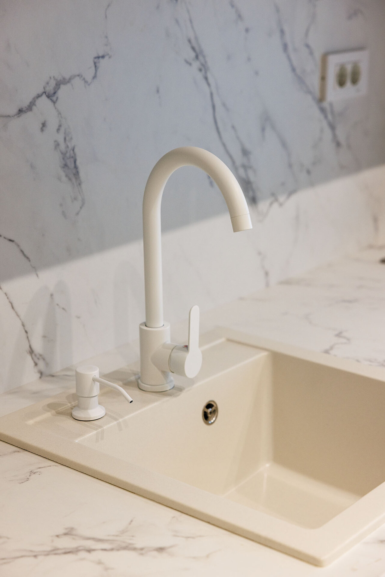Bucătăria este concepută ca un bloc monolitic, complet echipat, cu corpuri care urcă până la tavan, pentru o eficiență maximă a volumului disponibil.