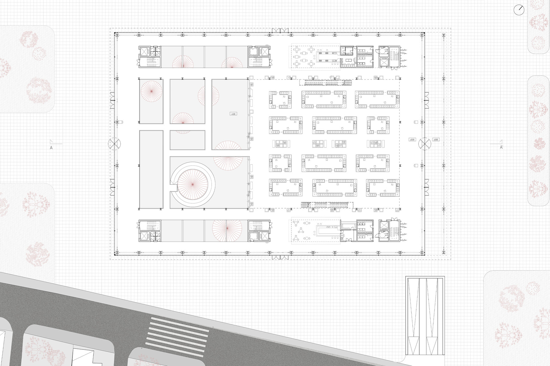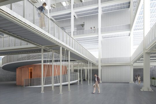 Un alt element important este flexibilitatea programului. Piața poate găzdui activități diverse, adaptându-se la nevoile comunității. Zonele destinate alimentelor proaspete coexistă cu spații pentru ateliere, mici expoziții sau evenimente temporare. În acest fel, clădirea devine un catalizator pentru viața urbană, activând spațiul pe tot parcursul anului. În exterior, esplanada și spațiile verzi oferă un cadru de întâlnire și relaxare, legând noul ansamblu de țesutul urban și creând o tranziție firească între zona industrială și oraș.