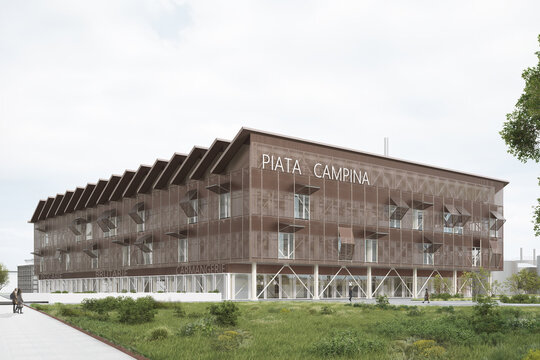 Materialitatea joacă un rol esențial în definirea caracterului clădirii. Oțelul cor-ten, sticla și lemnul sunt alese pentru a crea o expresie contemporană, dar care păstrează referințe clare la trecutul industrial. Dialogul dintre transparență și opacitate, dintre nou și vechi, oferă o arhitectură care inspiră atât respect pentru istorie, cât și deschidere către viitor. Proiectul nu își propune doar să ofere un spațiu de comerț funcțional, ci și să regenereze o parte importantă a orașului. Este o intervenție care valorifică memoria colectivă și o transformă într-un motor al dezvoltării urbane durabile. Piața agroalimentară devine astfel un nod de socializare, cultură și identitate, reactivând un loc cu o puternică încărcătură istorică și transformându-l într-un reper al Câmpinei contemporane.