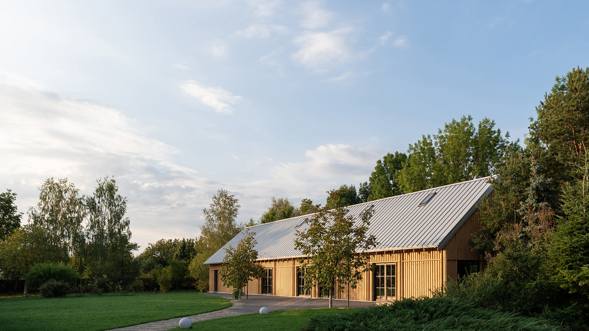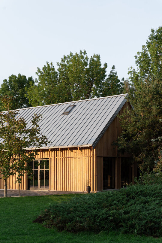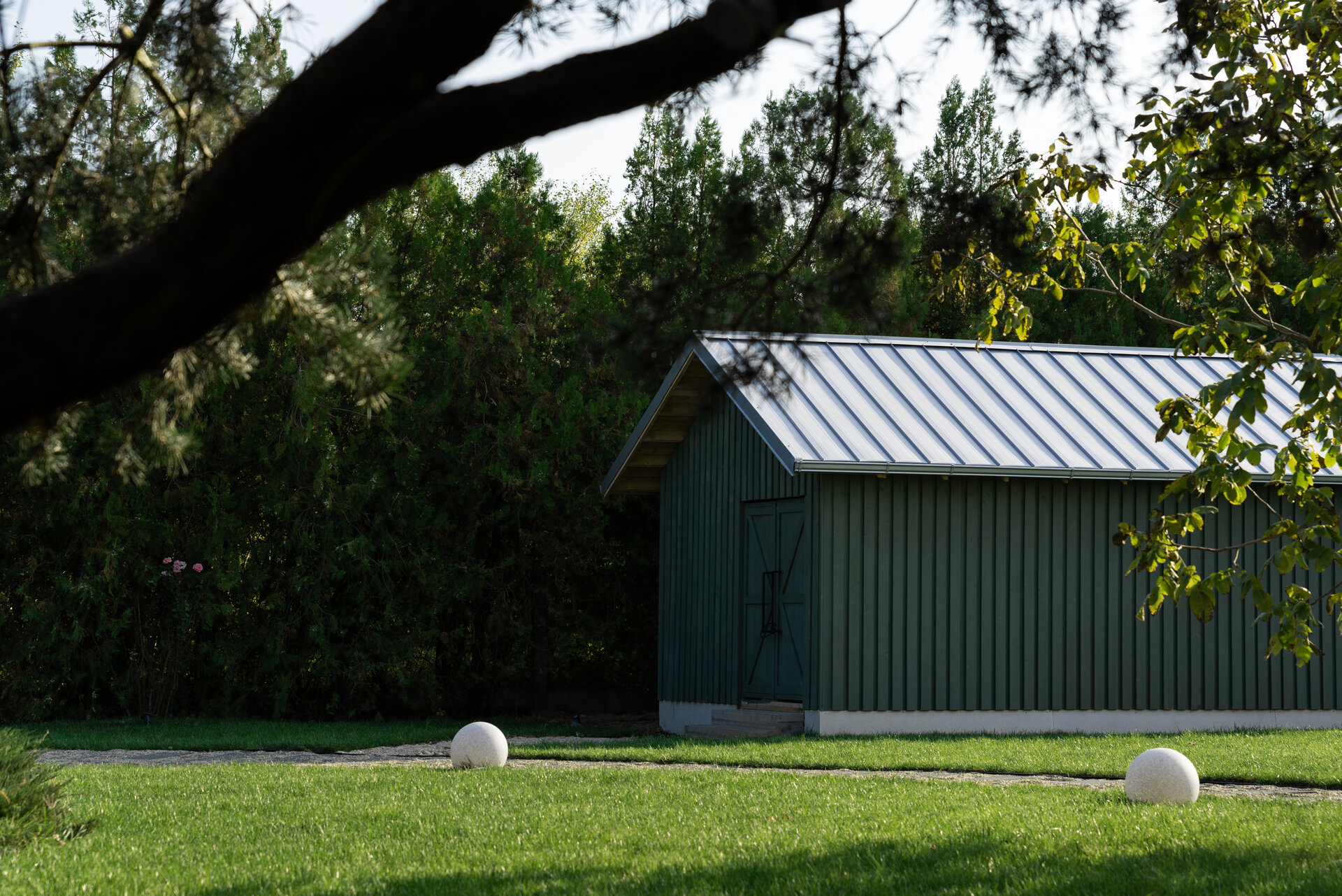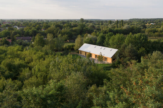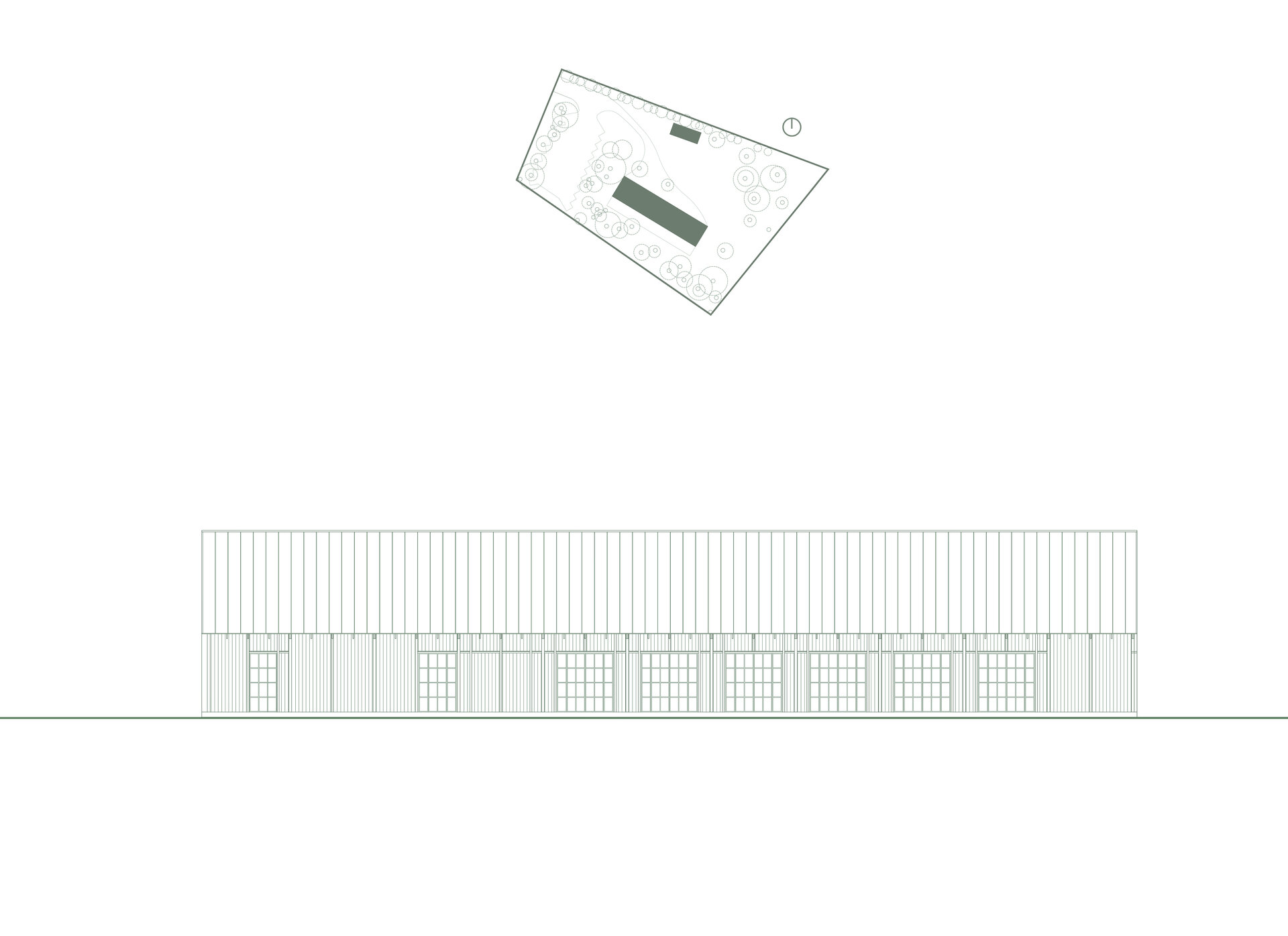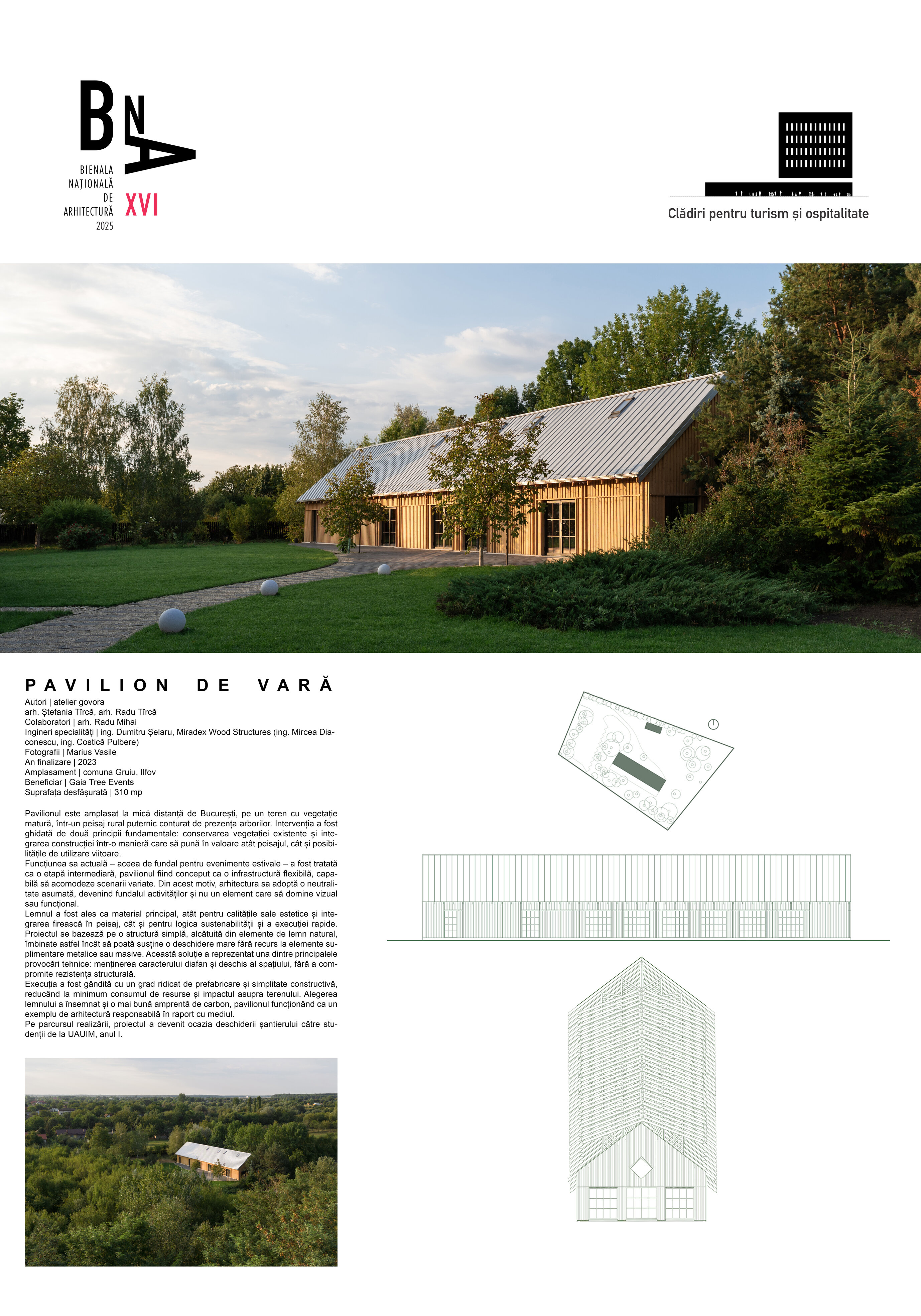 Pavilionul este amplasat la mică distanță de București, pe un teren cu vegetație matură, într-un peisaj rural puternic conturat de prezența arborilor. Intervenția a fost ghidată de două principii fundamentale: conservarea vegetației existente și integrarea construcției într-o manieră care să pună în valoare atât peisajul, cât și posibilitățile de utilizare viitoare.