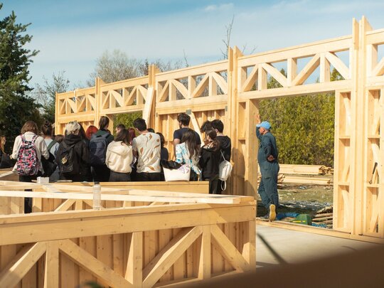 Execuția a fost gândită cu un grad ridicat de prefabricare și simplitate constructivă, reducând la minimum consumul de resurse și impactul asupra terenului. Alegerea lemnului a însemnat și o mai bună amprentă de carbon, pavilionul funcționând ca un exemplu de arhitectură responsabilă în raport cu mediul.