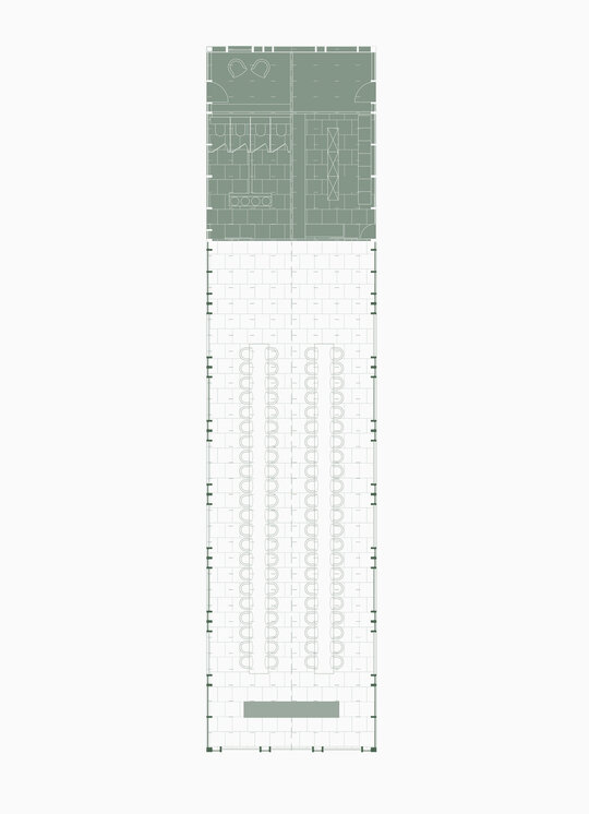 Funcțiunea sa actuală – aceea de fundal pentru evenimente estivale – a fost tratată ca o etapă intermediară, pavilionul fiind conceput ca o infrastructură flexibilă, capabilă să acomodeze scenarii variate. Din acest motiv, arhitectura sa adoptă o neutralitate asumată, devenind fundalul activităților și nu un element care să domine vizual sau funcțional.