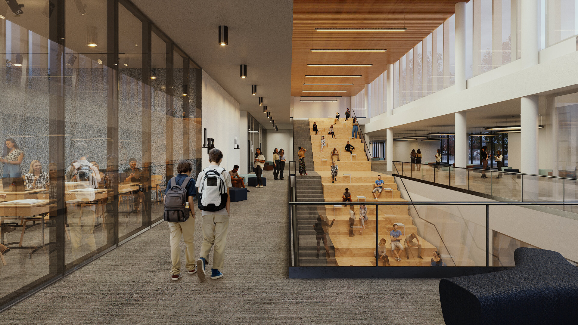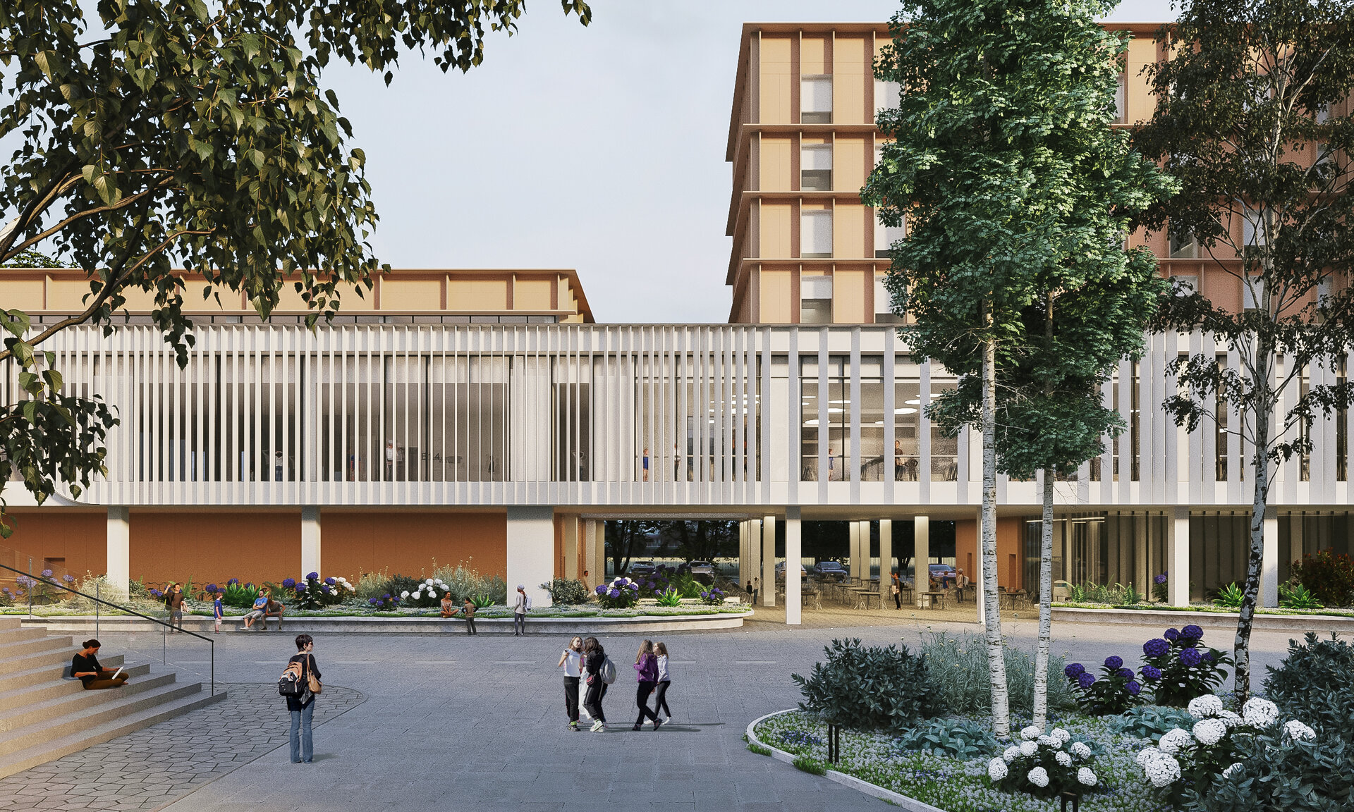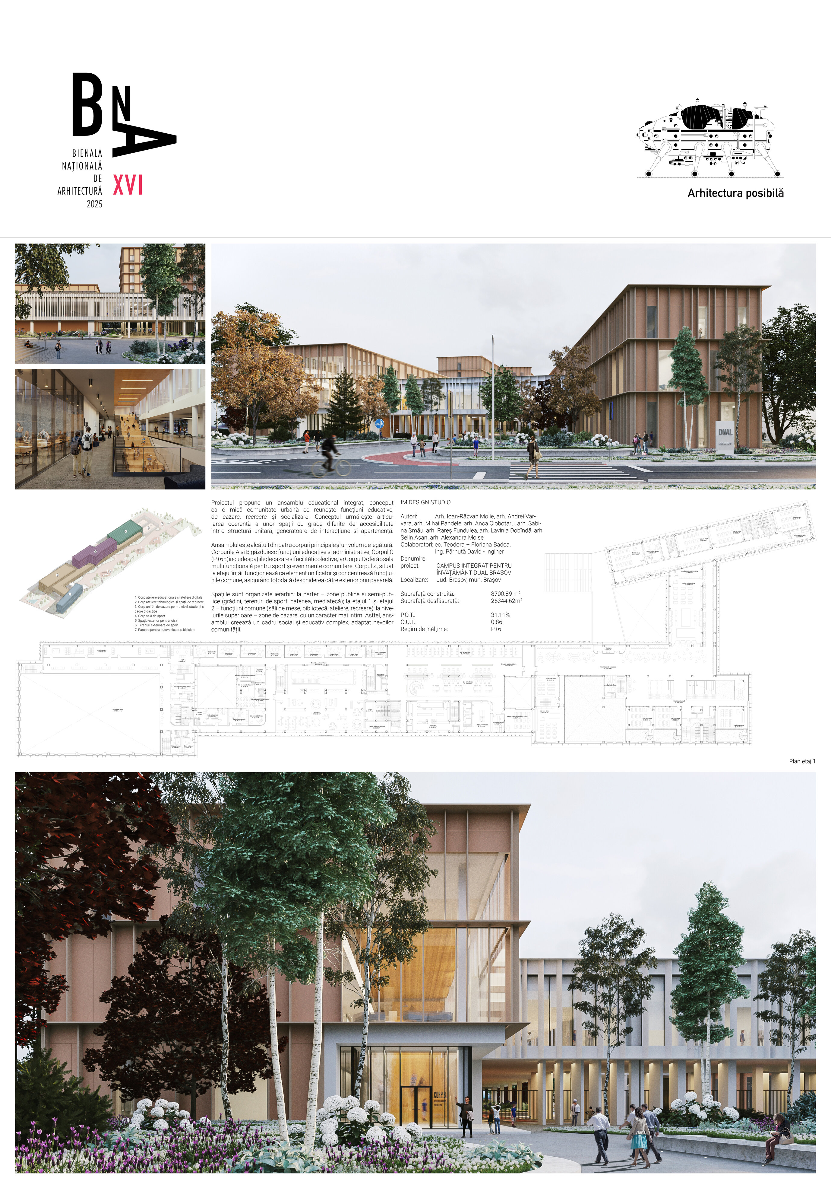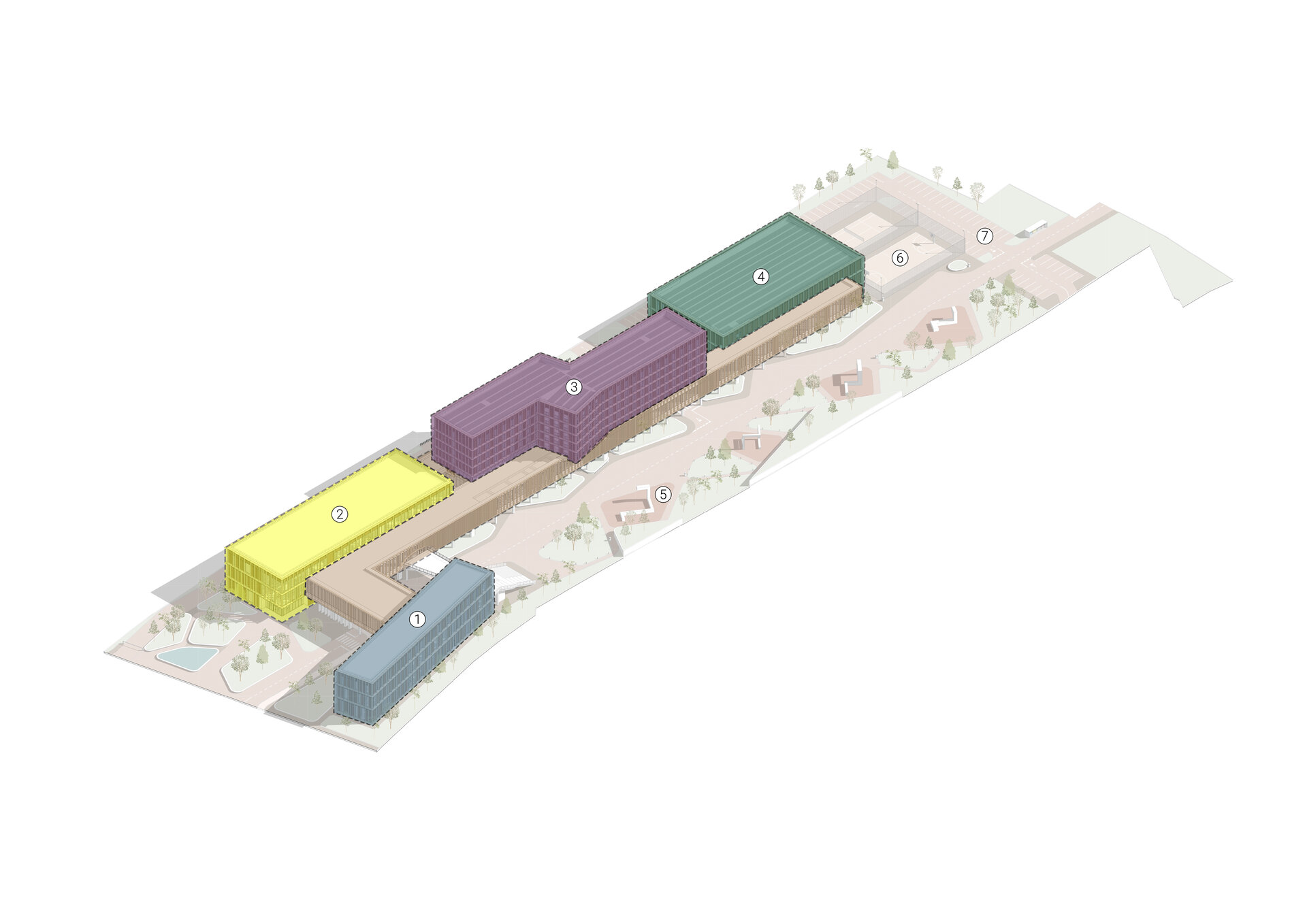 Astfel, ansamblul se definește ca un cadru educațional și social complex, unde arhitectura devine mijloc de coagulare a comunității. Prin distribuția atent gândită a funcțiunilor și prin articularea coerentă a volumelor, proiectul oferă o experiență integrată: învățare, locuire, socializare și recreere, într-un mediu urban viu și adaptabil.