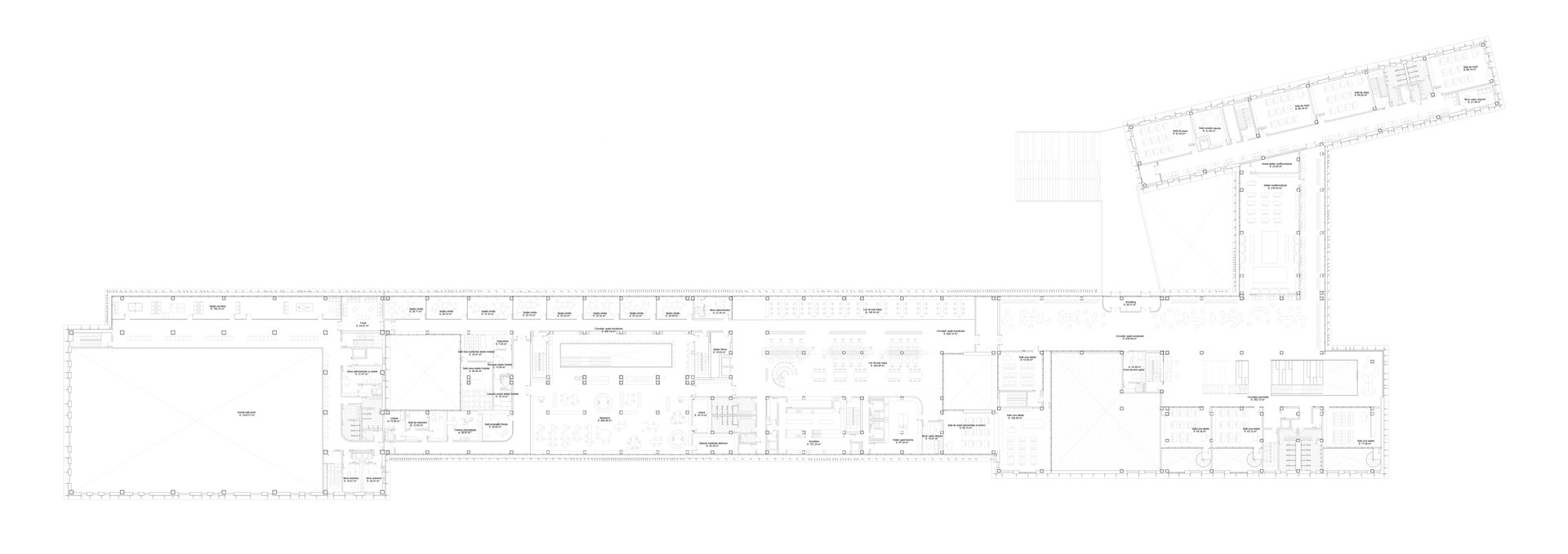 Corpul A și Corpul B găzduiesc activitățile educative și administrative, fiind structurate în jurul unor holuri de primire generoase, săli de curs și ateliere specializate. Acestea devin spațiile unde procesele pedagogice se desfășoară în mod formal, dar și unde se stimulează creativitatea și colaborarea.