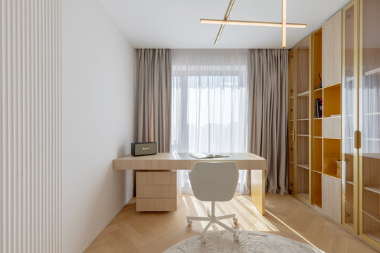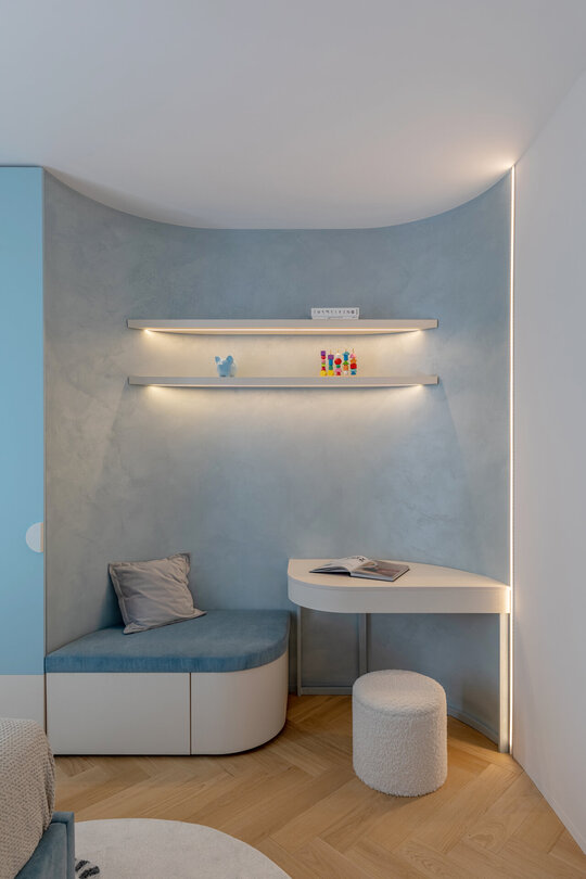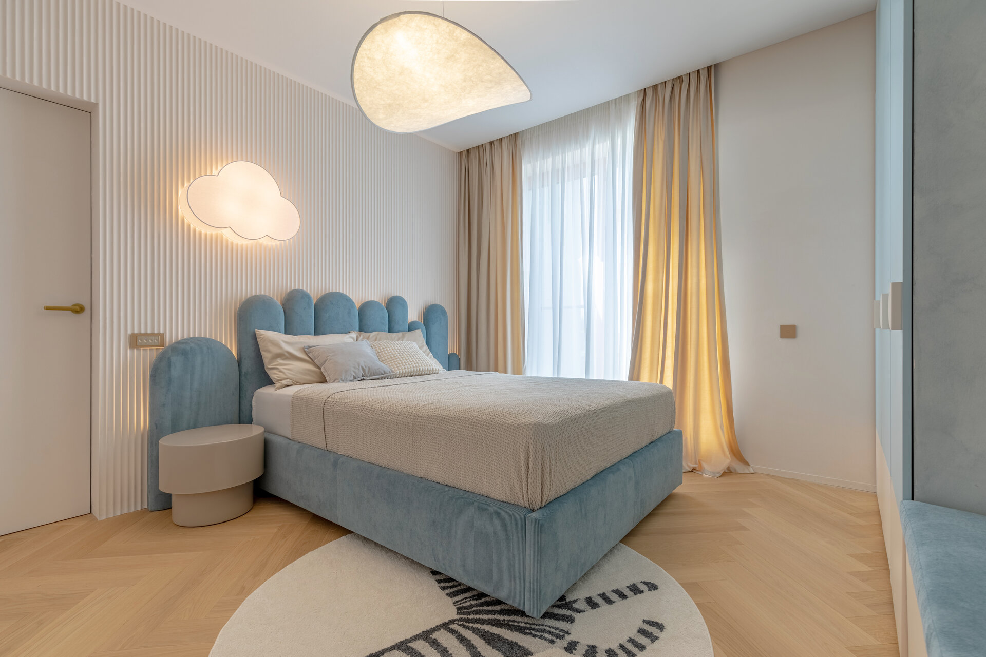 Camera copilului reprezintă partea ludică a casei, iar mobilierul te invită să studiezi sau să te relaxezi într-o atmosferă mai colorată.
