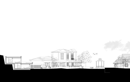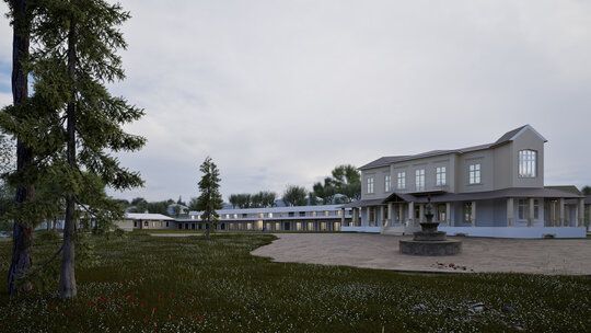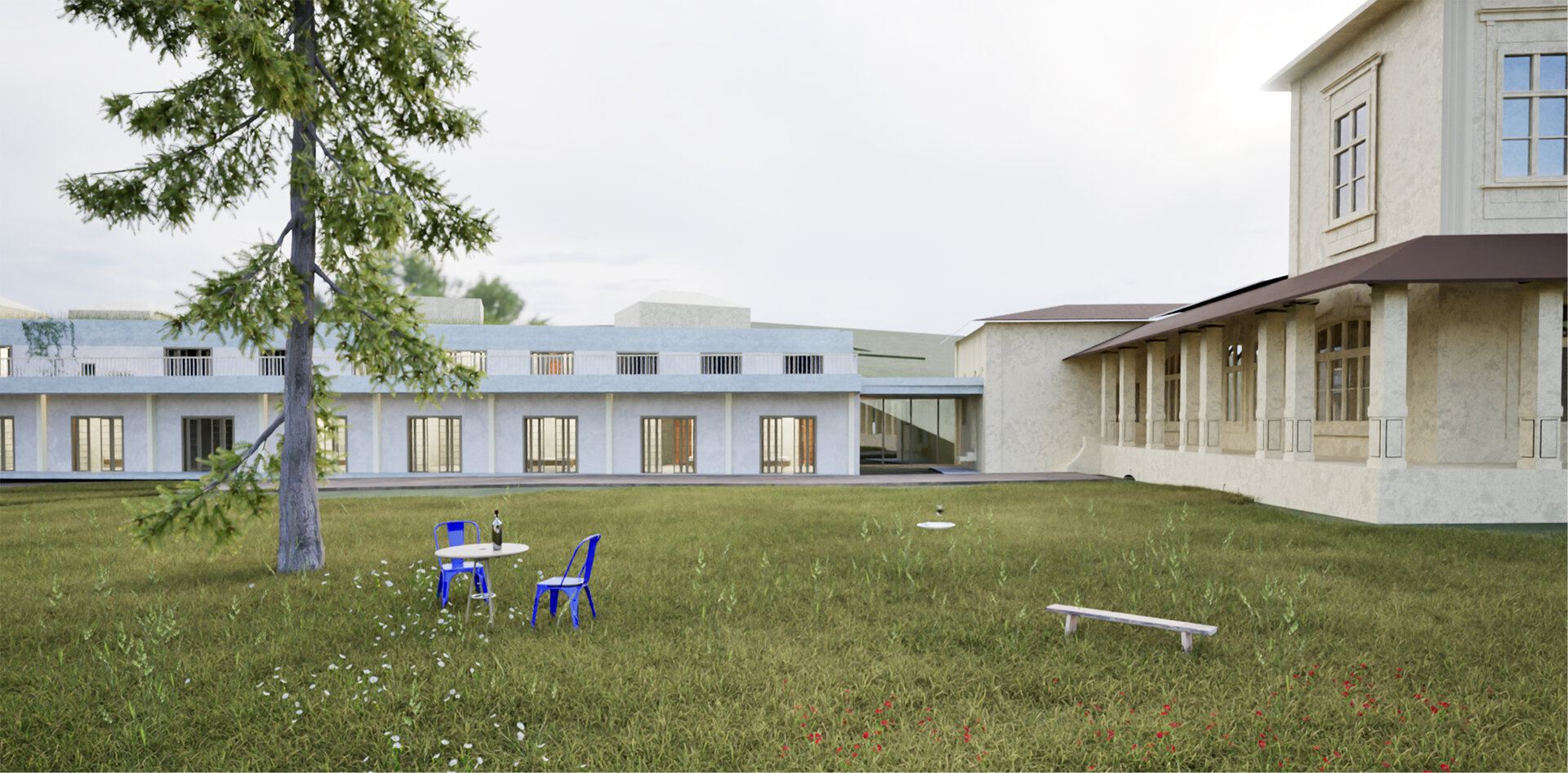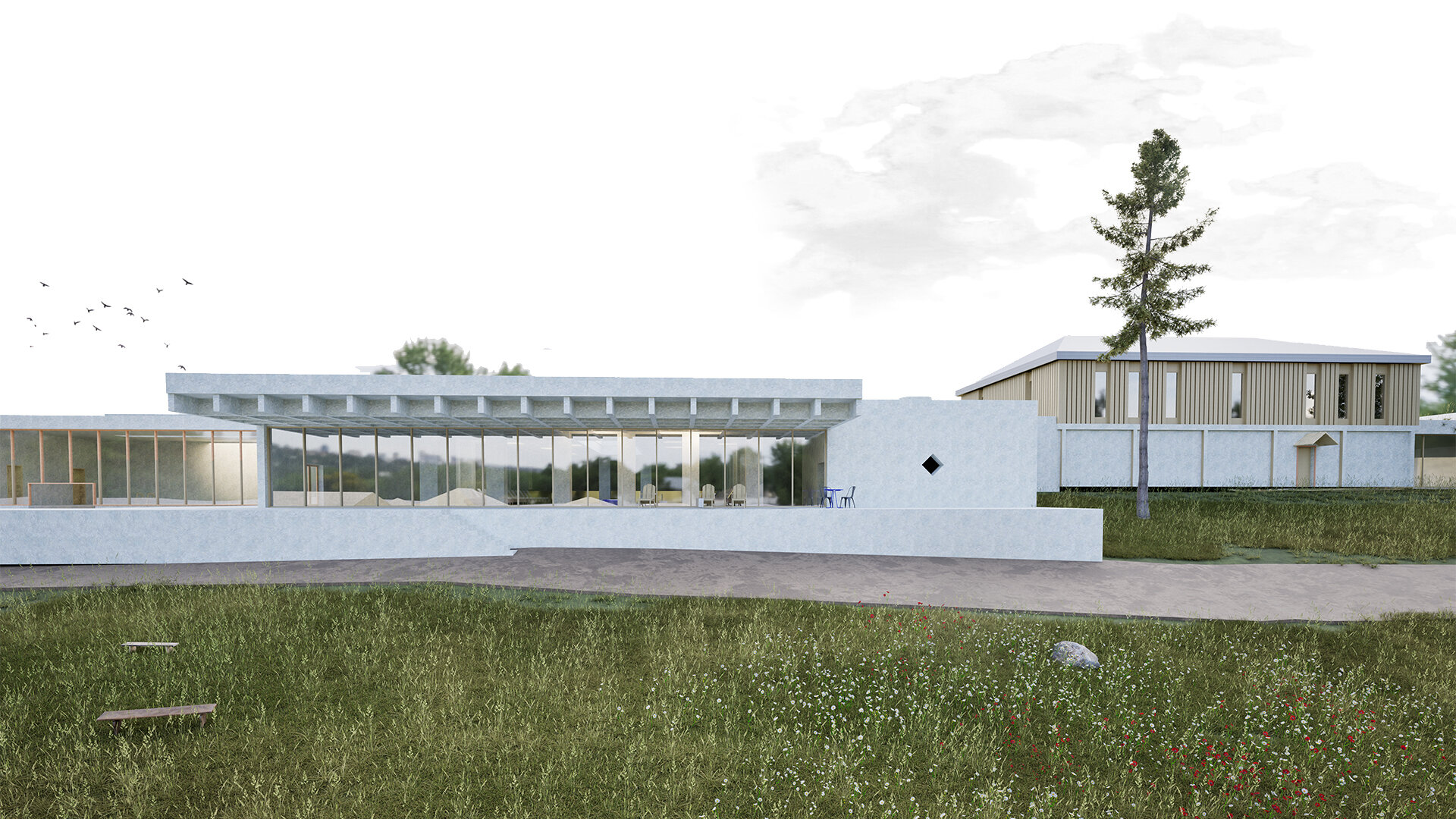 Arhitectura acestui centru își propune să impresioneze prin tăcere, fiind dispusă în plan secundar față de Conacul Monteoru, piesa principală a acestui ansamblu. Volumetria este inserată sensibil în peisaj fără să tulbure echilibrul existent. Compoziția devine o extensie a naturii, cu un paletar cromatic ce se încadrează in peisajul pitoresc.