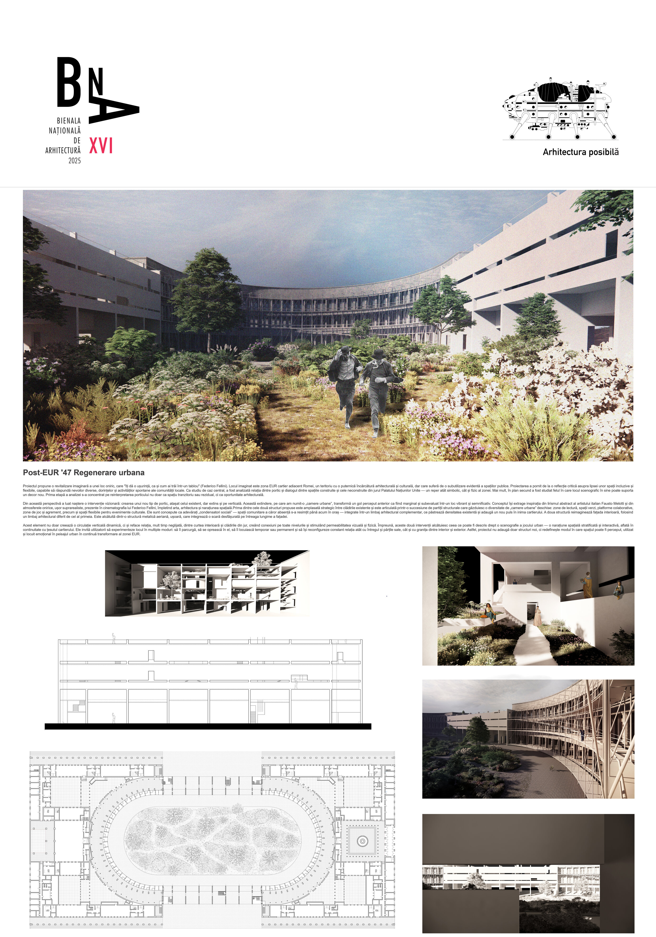 Proiectul propune o revitalizare imaginară a unei loc oniric, care "îți dă o ușurință, ca și cum ai trăi într-un tablou" (Federico Fellini). Locul imaginat este zona EUR cartier adiacent Romei, un teritoriu cu o puternică încărcătură arhitecturală și culturală, dar care suferă de o subutilizare evidentă a spațiilor publice. Proiectarea a pornit de la o reflecție critică asupra lipsei unor spații incluzive și flexibile, capabile să răspundă nevoilor diverse, dorințelor și activităților spontane ale comunității locale. Ca studiu de caz central, a fost analizată relația dintre portic și dialogul dintre spațiile construite și cele neconstruite din jurul Palatului Națiunilor Unite — un reper atât simbolic, cât și fizic al zonei. Mai mult, în plan secund a fost studiat felul în care locul scenografic în sine poate suporta un decor nou.