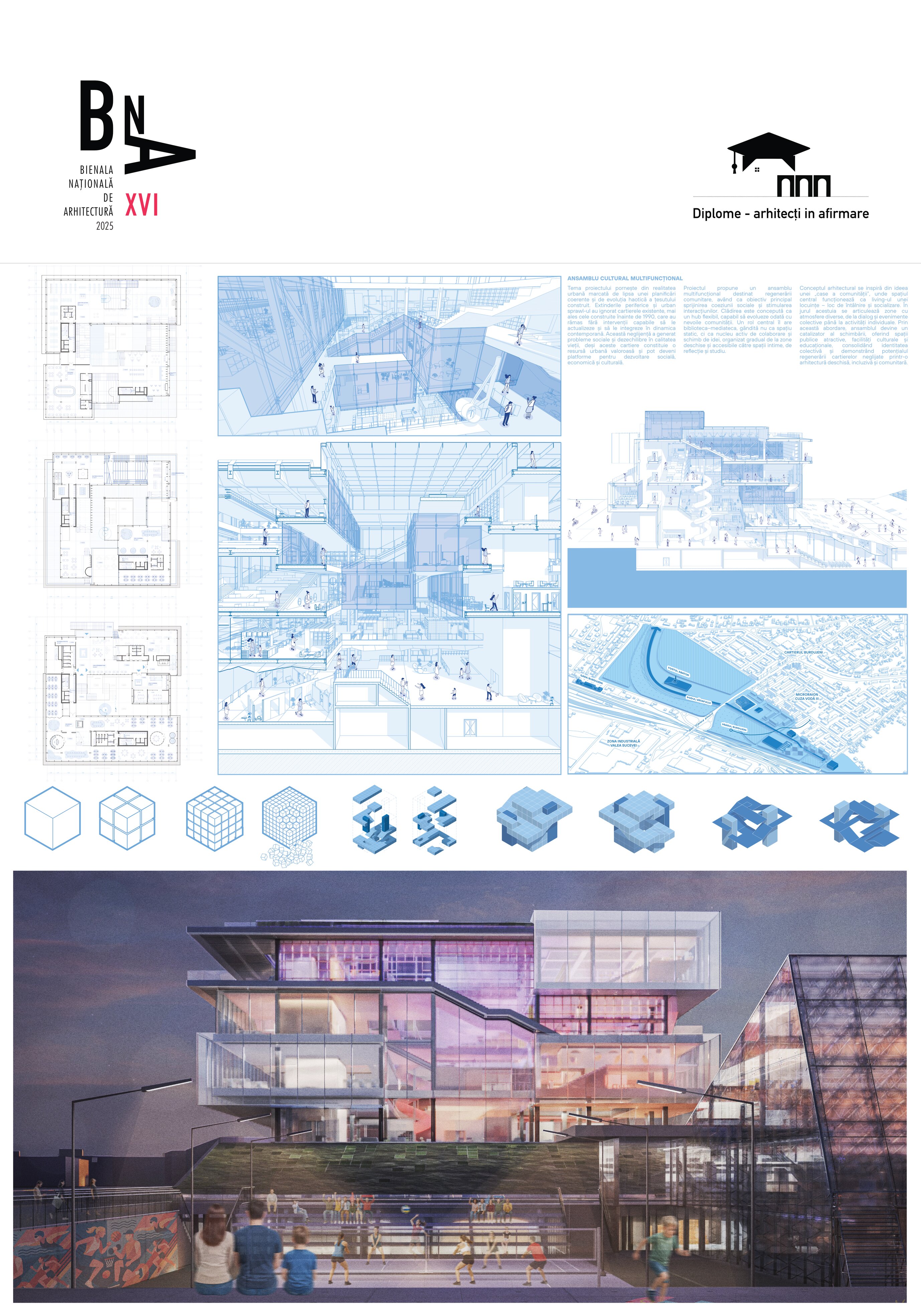 Proiectul se fundamentează pe ideea de a genera o arhitectură deschisă, incluzivă și flexibilă, care recunoaște importanța comunităților locale și potențialul lor de regenerare. Prin integrarea unor spații publice atractive, prin oferirea de facilități culturale și educaționale și prin promovarea unei utilizări organice, naturale, ansamblul propus își propune să devină un catalizator al schimbării. El aduce în prim-plan atât îmbunătățirea calității vieții urbane, cât și consolidarea unei identități colective, demonstrând că regenerarea cartierelor neglijate poate începe printr-o arhitectură care să îmbine funcționalitatea cu dimensiunea comunitară și culturală.