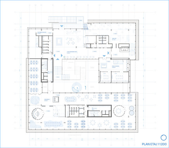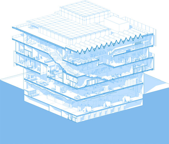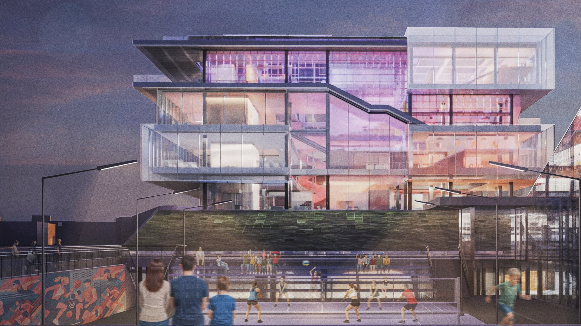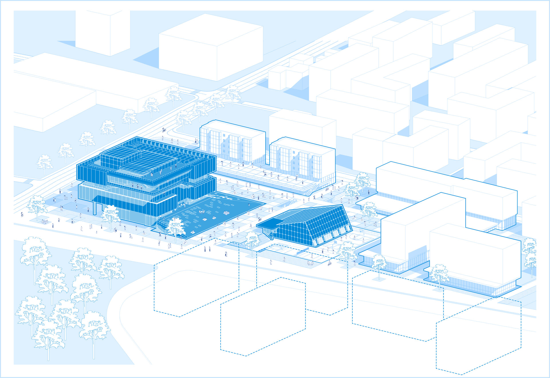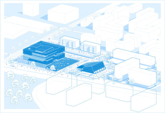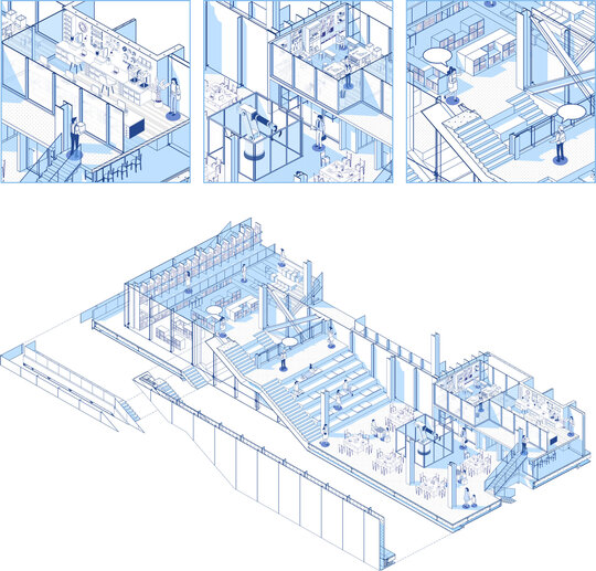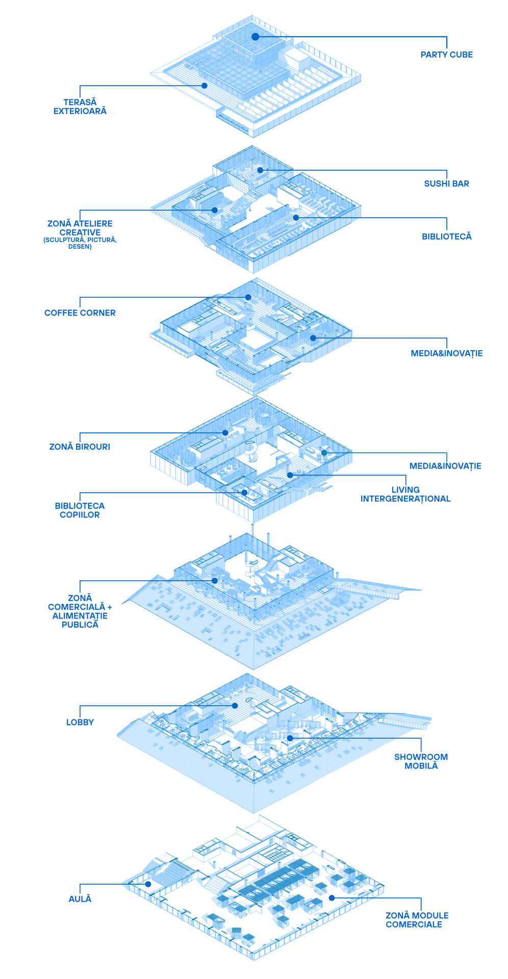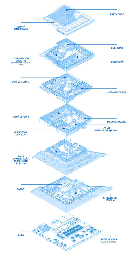 Conceptul arhitectural se inspiră din ideea unei locuințe extinse la scara orașului. Clădirea devine astfel o „casă a comunității”, în care fiecare funcțiune își găsește locul într-un sistem coerent. La fel cum livingul este centrul unei locuințe și locul principal de întâlnire, spațiul central al ansamblului este gândit ca o zonă de interacțiune intensă, un nucleu social unde oamenii se pot conecta. Pe măsură ce utilizatorul avansează, spațiile devin mai personale și mai concentrate, creând o diversitate de atmosfere care răspund diferitelor nevoi – de la dialog și socializare, până la reflecție și studiu individual.