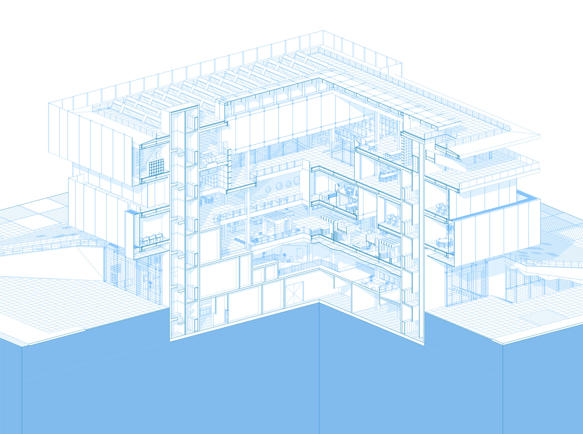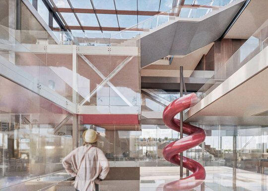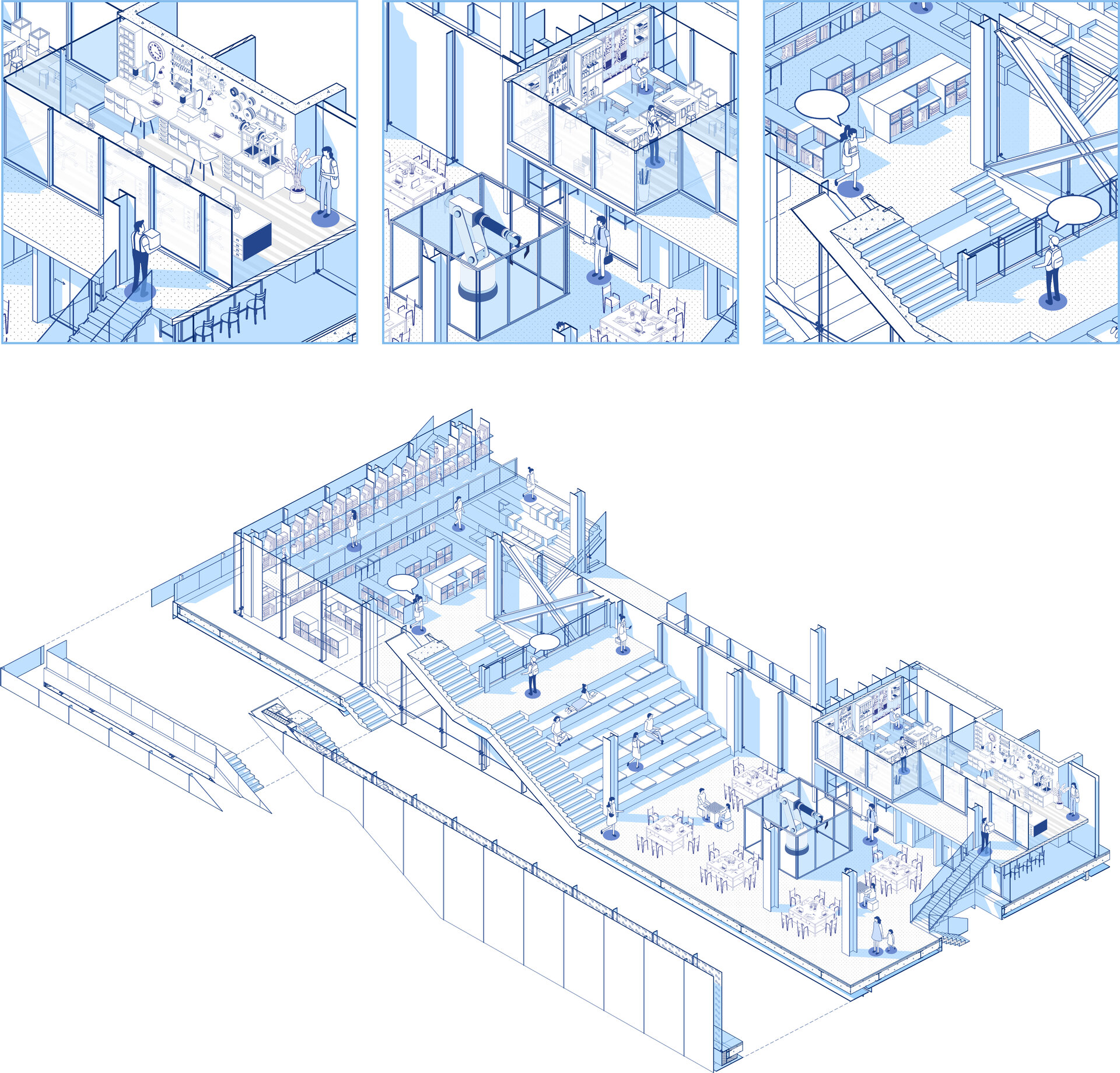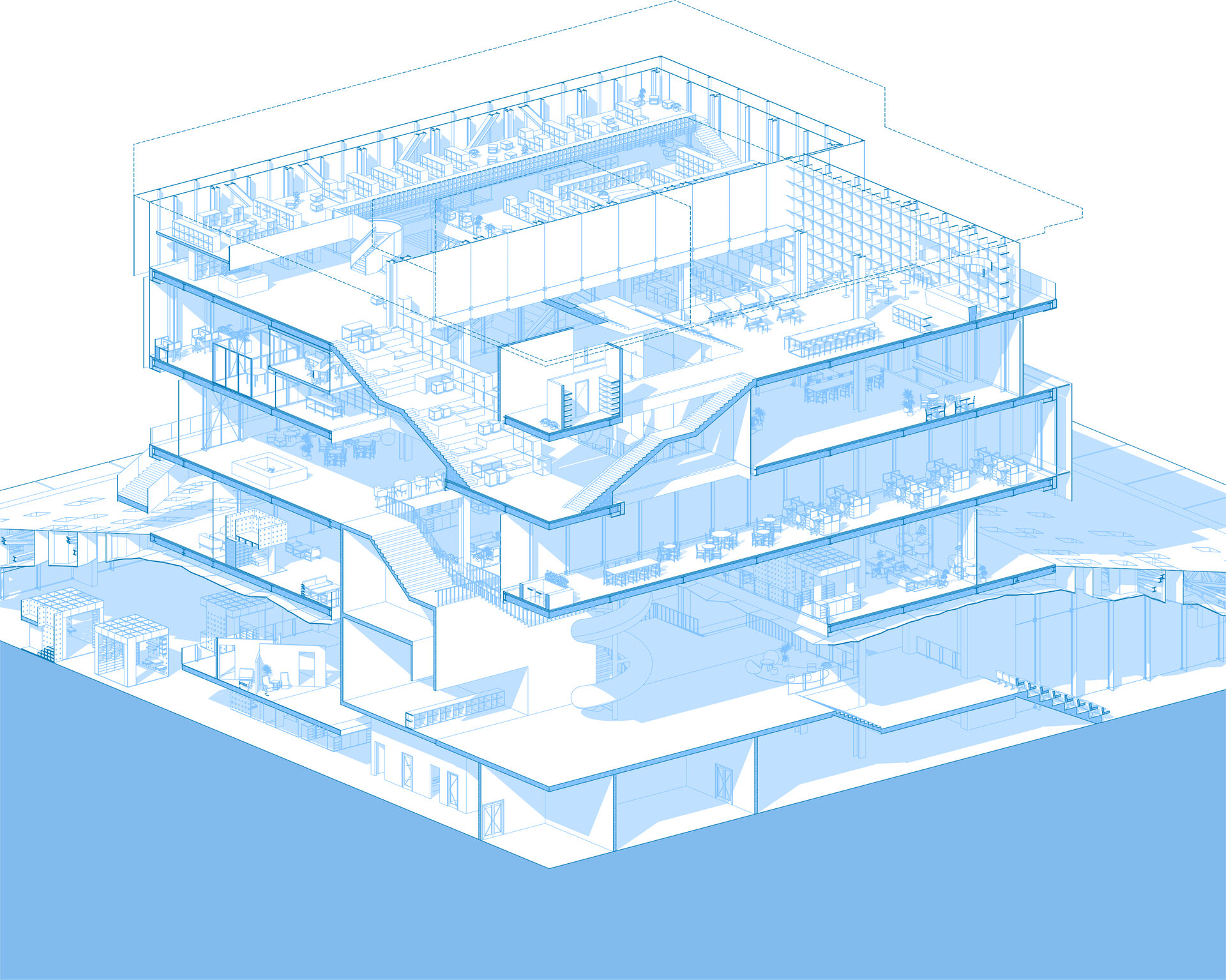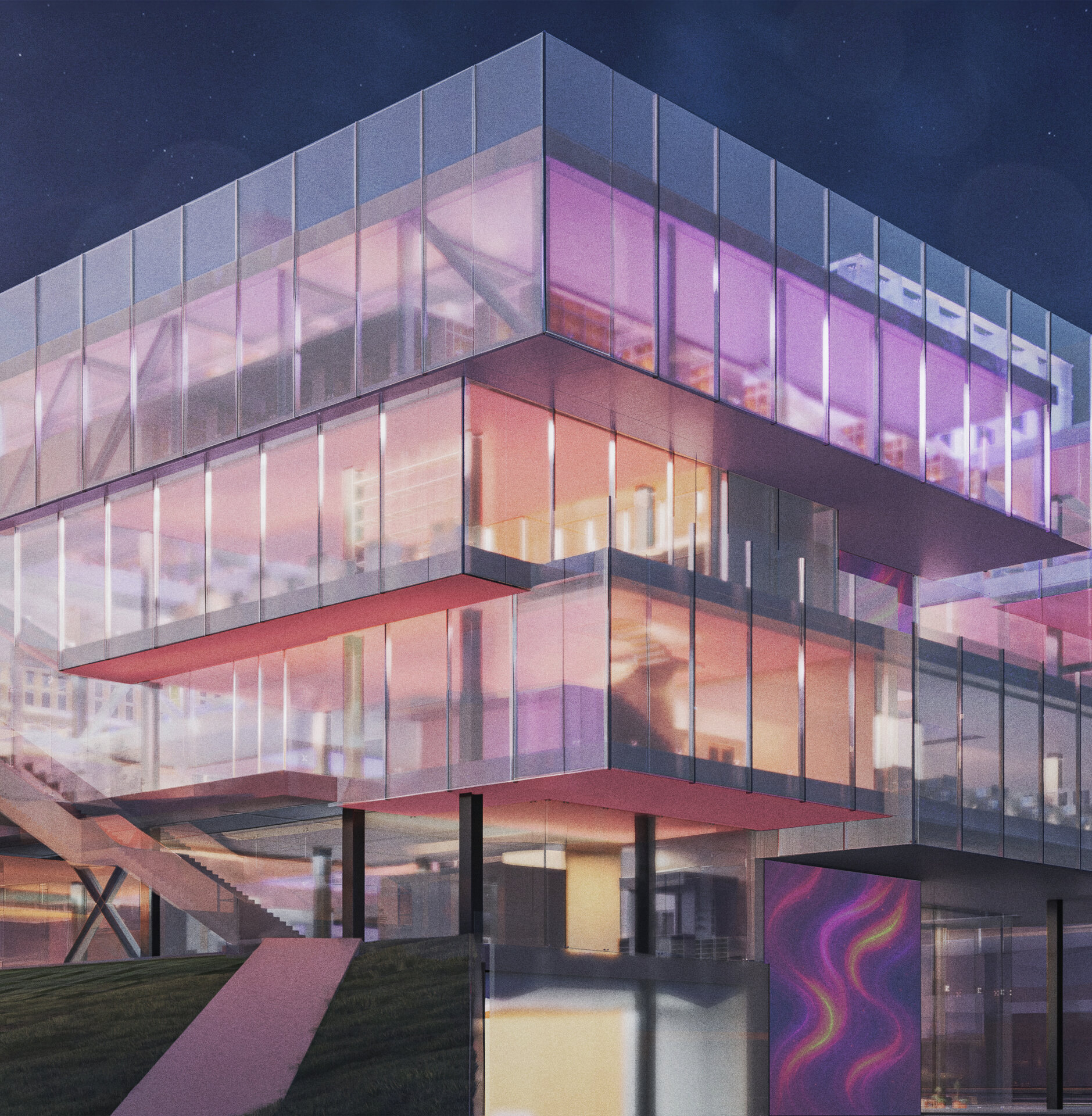 Conceptul arhitectural se inspiră din ideea unei locuințe extinse la scara orașului. Clădirea devine astfel o „casă a comunității”, în care fiecare funcțiune își găsește locul într-un sistem coerent. La fel cum livingul este centrul unei locuințe și locul principal de întâlnire, spațiul central al ansamblului este gândit ca o zonă de interacțiune intensă, un nucleu social unde oamenii se pot conecta. Pe măsură ce utilizatorul avansează, spațiile devin mai personale și mai concentrate, creând o diversitate de atmosfere care răspund diferitelor nevoi – de la dialog și socializare, până la reflecție și studiu individual.