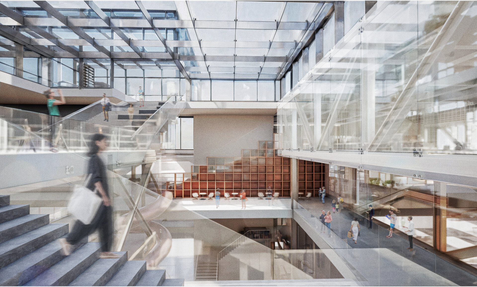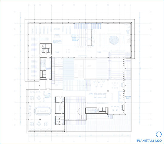 O componentă esențială a proiectului o constituie biblioteca și mediateca, însă acestea nu sunt înțelese în sens tradițional, ca spații statice de lectură și arhivare, ci ca nuclee active de schimb de idei, de colaborare și de învățare reciprocă. În cadrul lor, utilizatorii pot descoperi nu doar informații și resurse, ci și experiențe comune care contribuie la consolidarea sentimentului de apartenență. Dinamica acestor spații este susținută de o organizare gradată, care pornește de la zone larg accesibile și deschise și conduce, prin tranziții fluide, către spații cu un grad mai mare de intimitate și liniște.