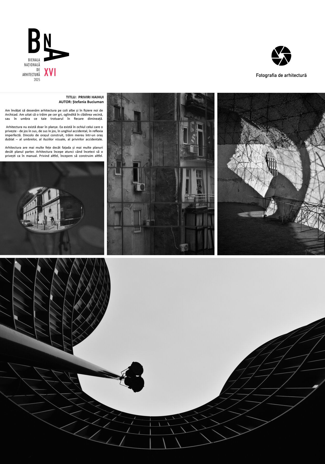 Arhitectura nu există doar în planșe. Ea există în ochiul celui care o privește - de jos în sus, de sus în jos, în unghiul accidental, în reflexia imperfectă. Dincolo de orașul construit, trăim mereu într-un oraș dublat – al umbrelor, al iluziilor vizuale, al privirilor accidentale.