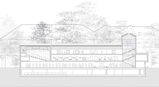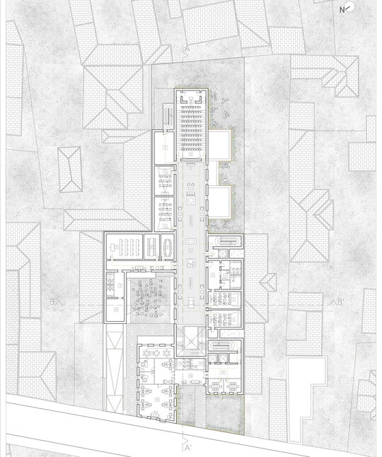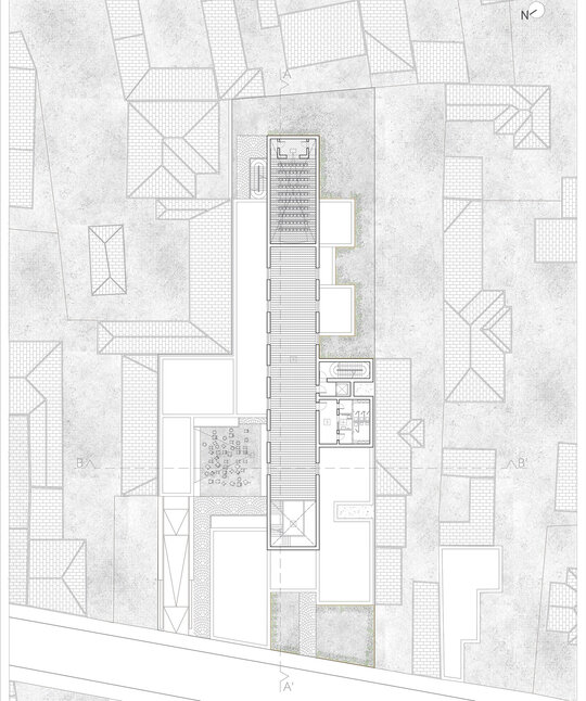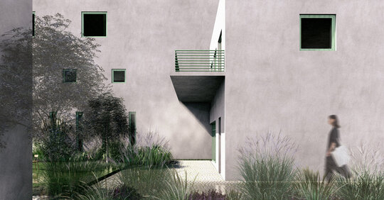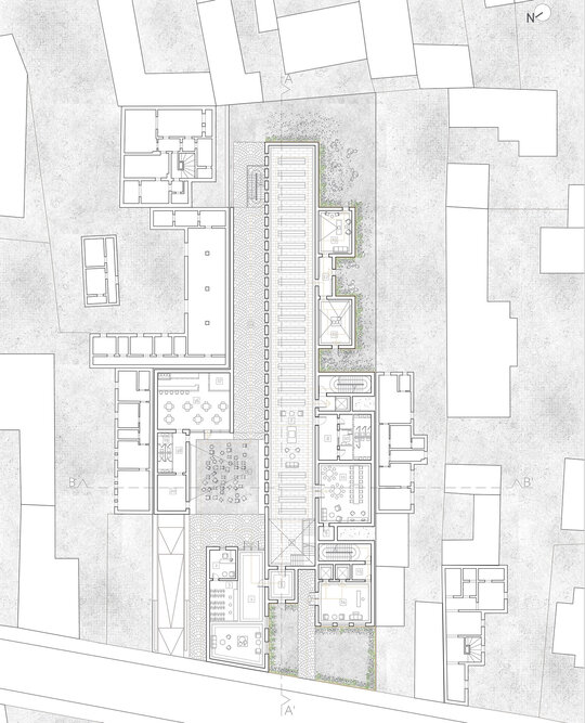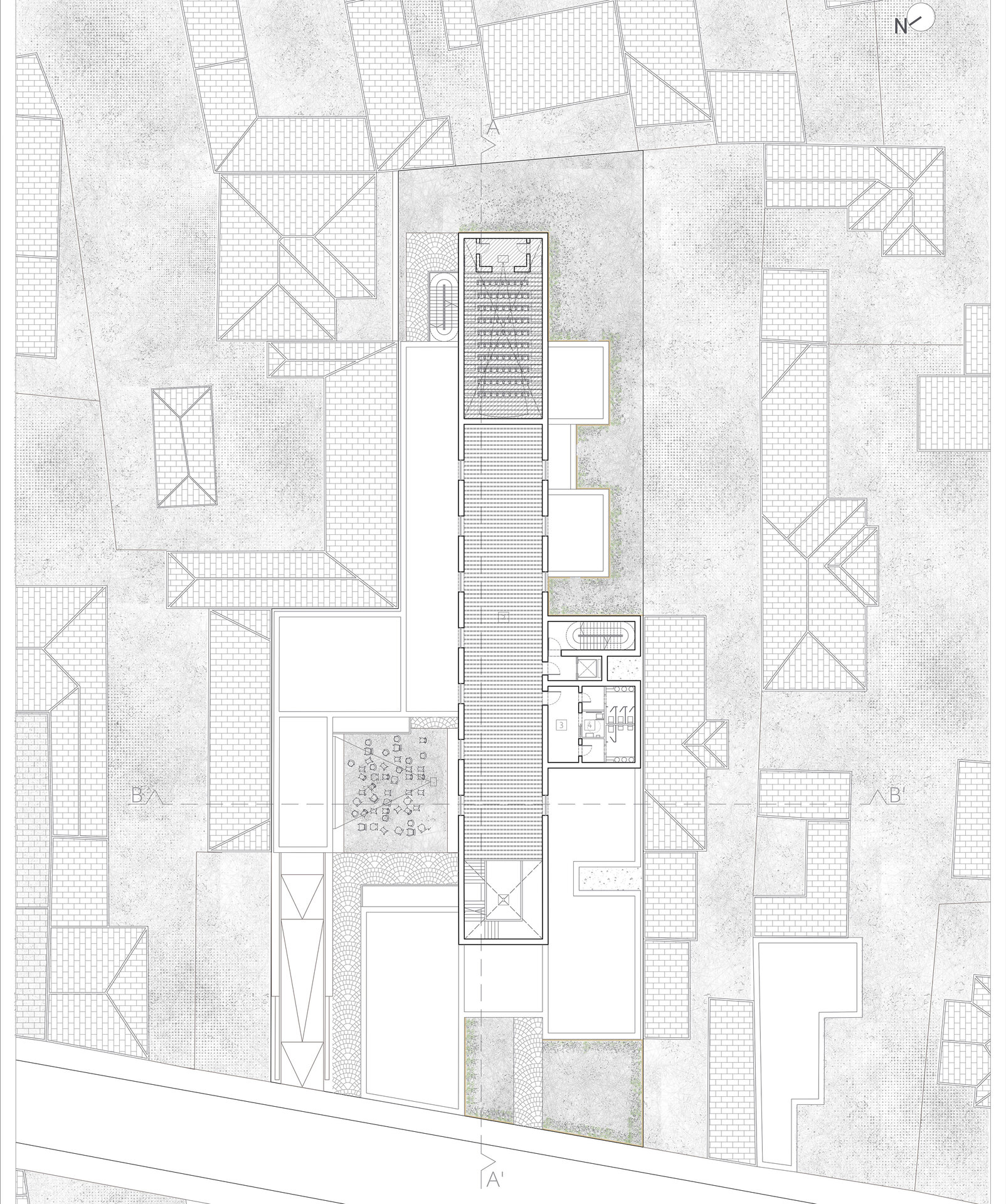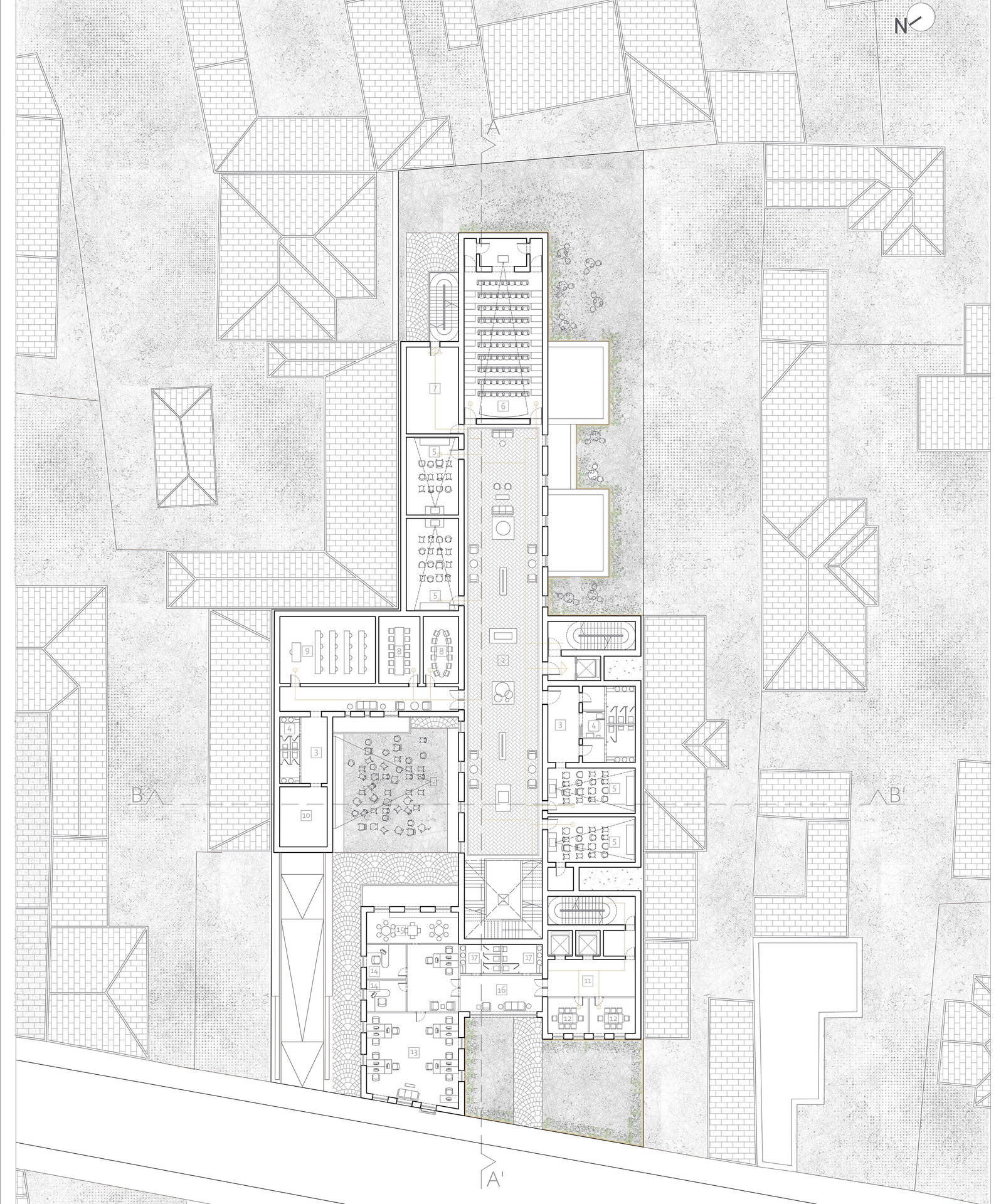 Demersul arhitectural își propune nu o inserție autoritară, ci una discretă, care împrumută morfologia vernaculară a zonei: o compoziție dezvoltată în lungul parcelei, inspirată de casele vagon și de succesiunea curților intime. Spațiile interioare ale clădirii sunt gândite pentru a sprijini activ comunitatea artistică locală și studenții: o videotecă și o bibliotecă la parter, mici săli de proiecție, spații de expoziție temporară și, mai ales, o “sală a orașului” la etaj, un spațiu versatil dedicat întâlnirilor, proiecțiilor, repetițiilor și dialogului public. Această funcțiune a rezultat din discuții directe cu studenți ai UNATC, care resimt acut lipsa unor astfel de locuri de studiu și expresie.