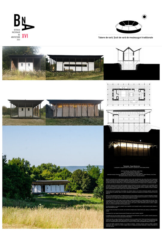 Gândităca locuință care să îi găzduiască pe profesorii noștri invitați, Casa Mentorului este ultima dintre cele 12 machete de studiu la scara omului pe care le-am construit până acum la Școala de la Bunești – o școală de vară pe care am creat-o în 2008, în mijlocul unei păduri din județul Argeș. Cu intenția de a practica arhitectura ca schole (termen grec pentru școală, cu sensul de timp liber pentru discuții și filozofie), dar și ca o reinventare practicăpe șantier, prin încercări și erori, a arhitectului de astăzi.