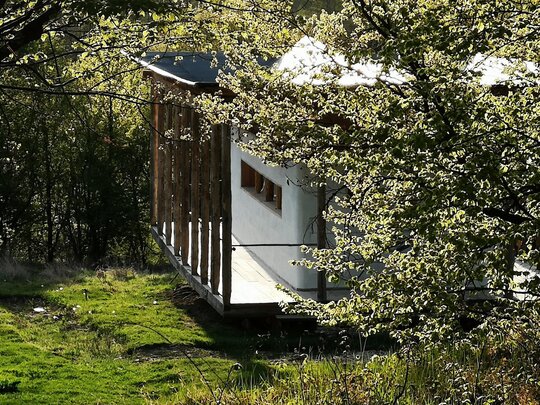 O casă în aer liber, un spațiu intermediar într-o relație de unu la unu cu spațiul interior. Porticul este răspunsul arhitectural dat temei locuirii în natură. Spațiul interior este compus dintr-o mică bucătărie, o baie, un pat și o masă, cu o suprafață utilă totală de 40 mp. O fereastră bandou este orientată spre sud, în timp ce un oculus circular supraveghează campusul înspre nord.