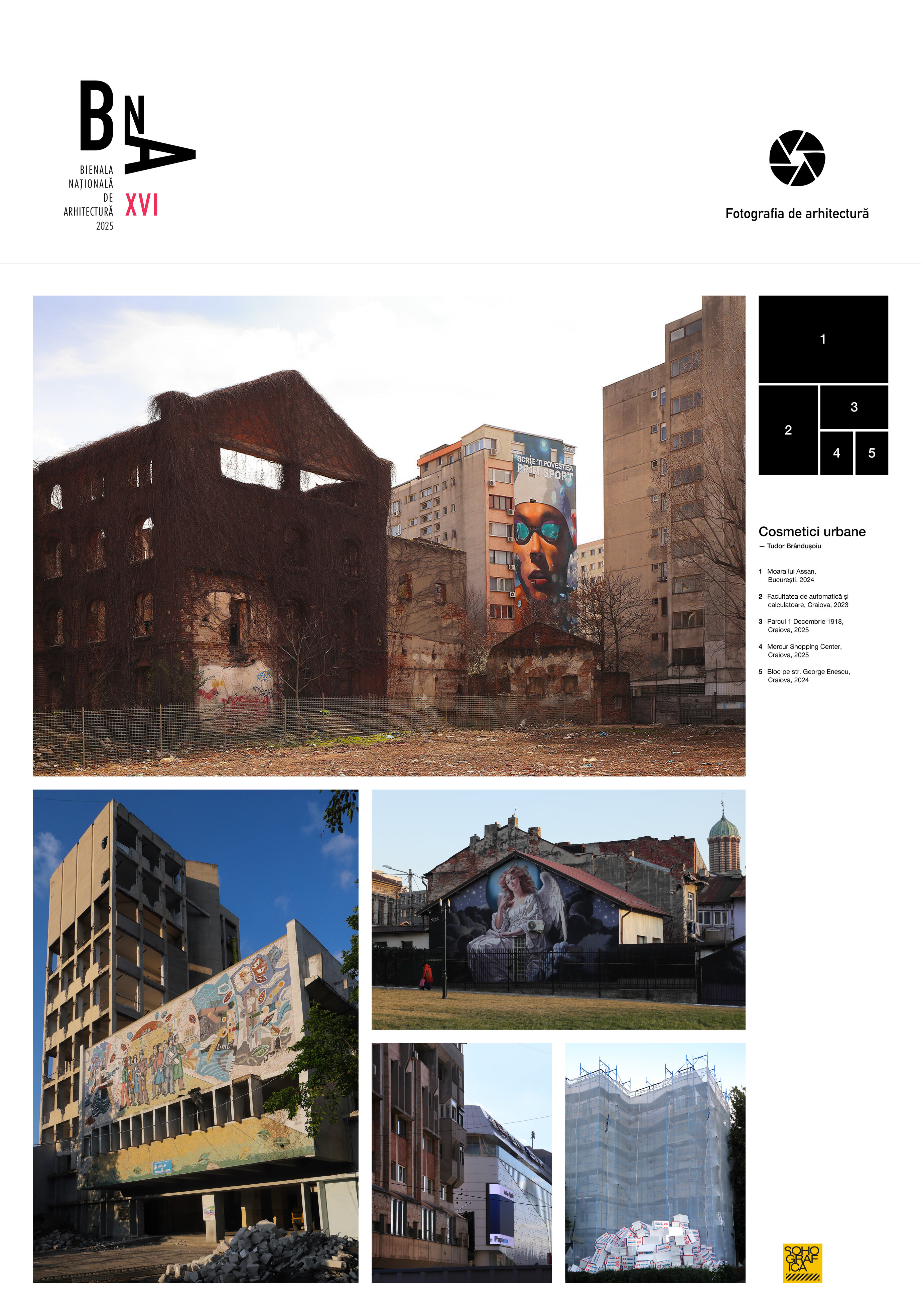 Seria „Cosmetici urbane” face parte dintr-o cercetare în curs despre transformarea imaginii orașelor prin procese cu impact vizual puternic – de la picturi murale la mesh-uri publicitare și reabilitări termice. Fotografiile inventariază aceste intervenții, prezente pe scară largă, prin care „arhitectura socialistă” este acoperit sau mascat, fie involuntar, fie intenționat, sub noi straturi de imagine.