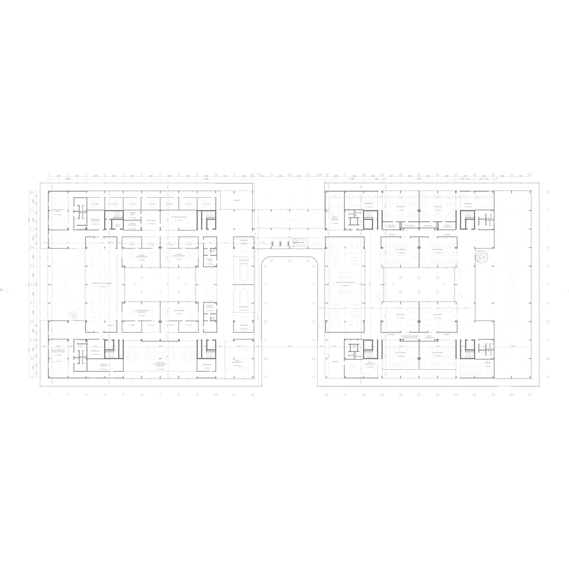 În zona de cercetare, la acest etaj avem departamentul de inginerie a materialelor, cu laboratoare de cercetare, de testare și de computare. Schema de circulație se respectă și aici și este completată de un coridor exterior zonei de laboratoare, ce găzduiește spații complementare, dincolo de filtru vestiarelor. Practic, circulația este împărțită în două fluxuri - unul curat, înspre interior, și unul murdar, spre exterior.