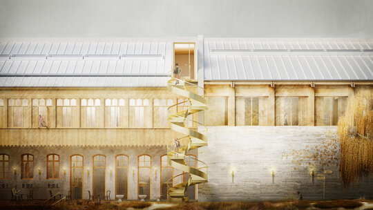Conversia si extinderea fostei Fabrici Bourul din București. Hub Urban pentru studenți. Cazare și funcțiuni complementare